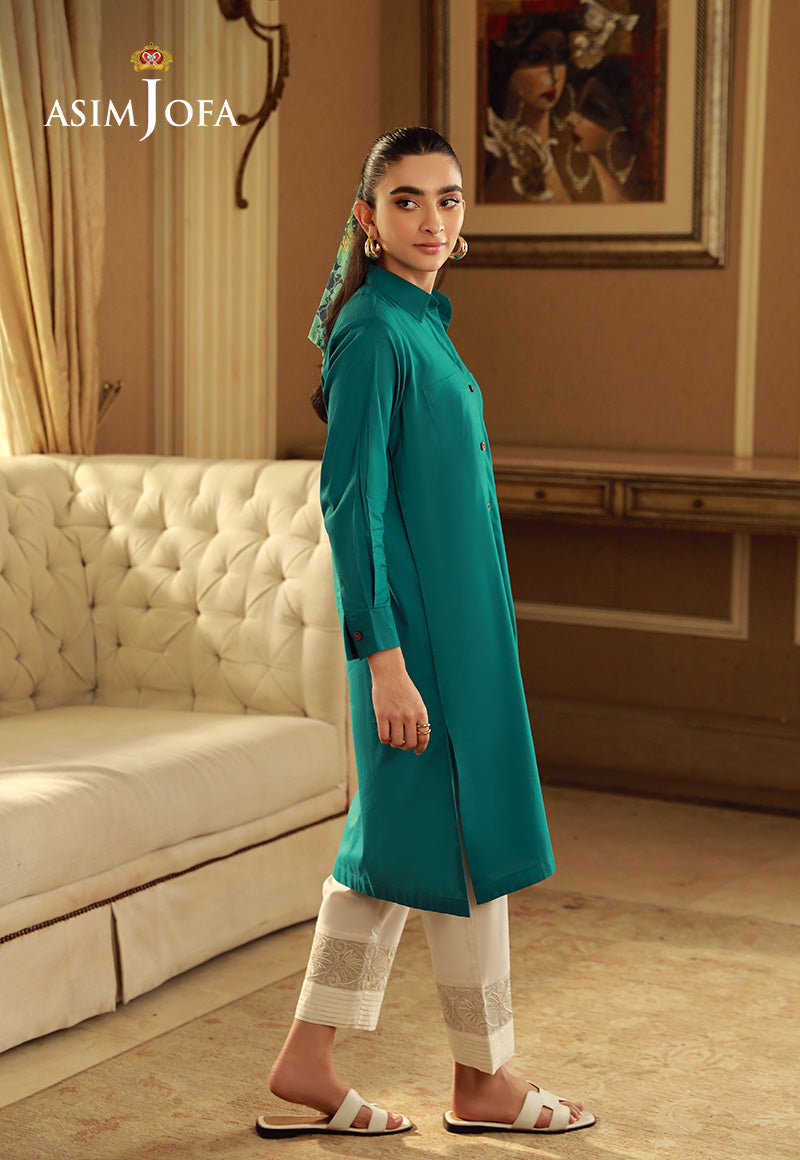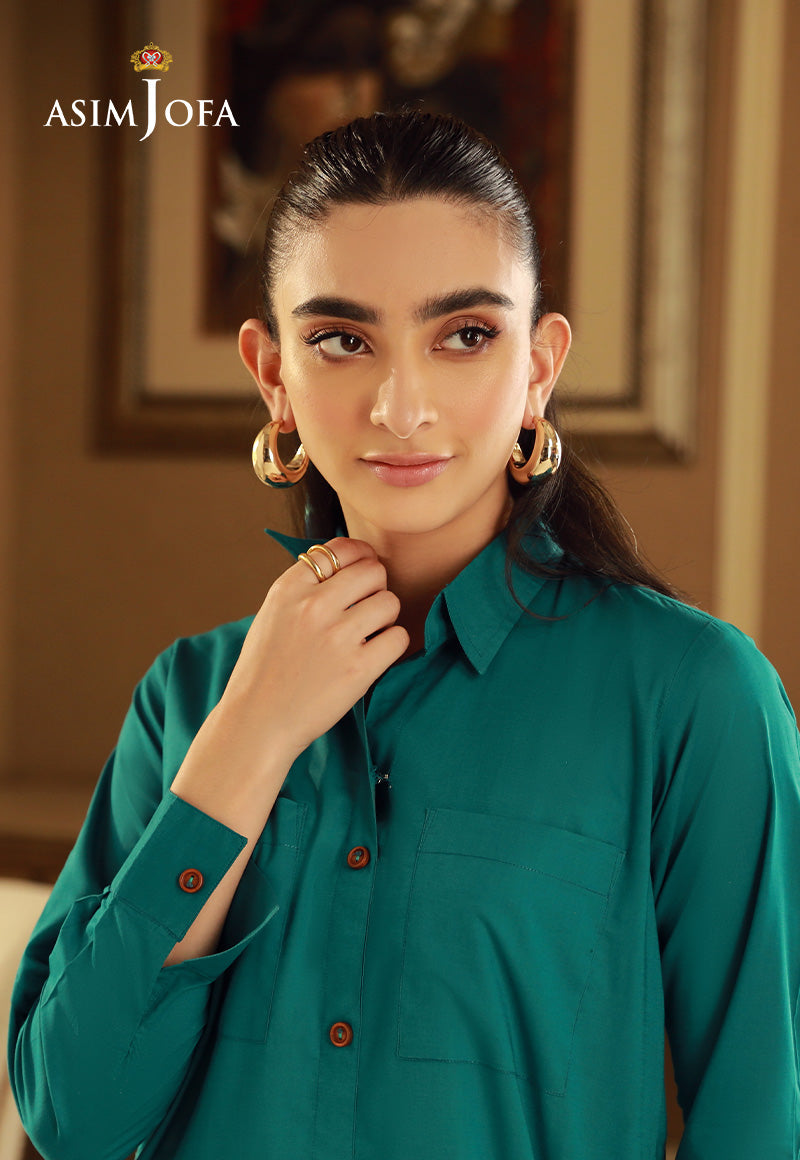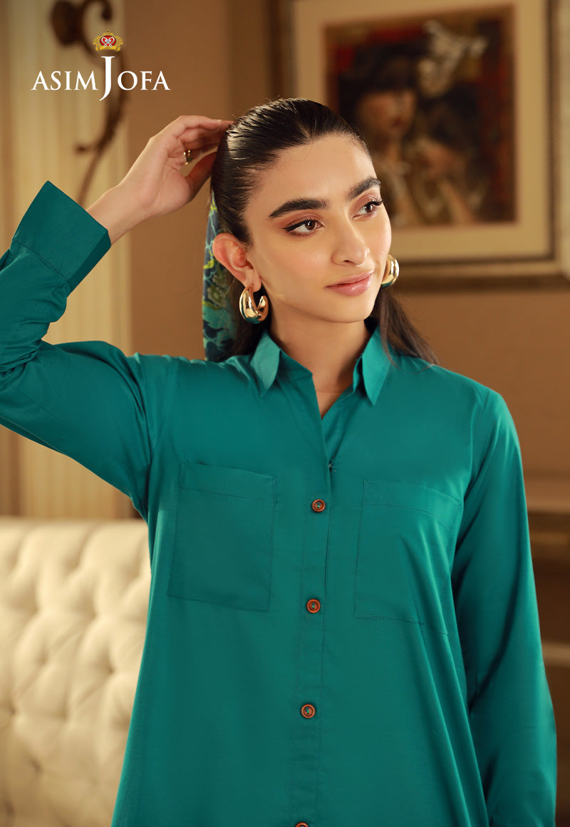 Embrace a touch of modernity with this teal green shirt. The bold color adds a pop of energy to your look. The stylish cut and trendy details make it perfect for the fashion-forward woman.
