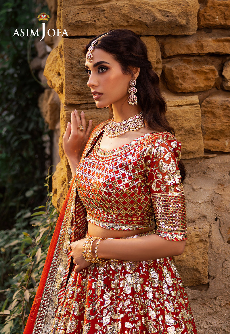 Like an orange marigold in radiant bloom, this ensemble exudes divine femininity. The embroidered outfit, an artistic masterpiece, is graced with intricate gold zariwork woven among warm rust threads, while light gold sequins in 5mm and 3mm sizes catch the light, adding a luminous charm. The embroidered dupatta, a flimsy expression of beauty, completes this harmonious ode to Eastern fashion.