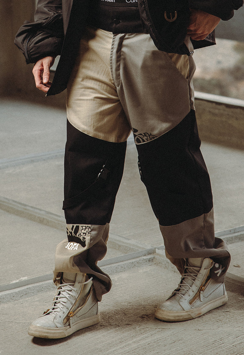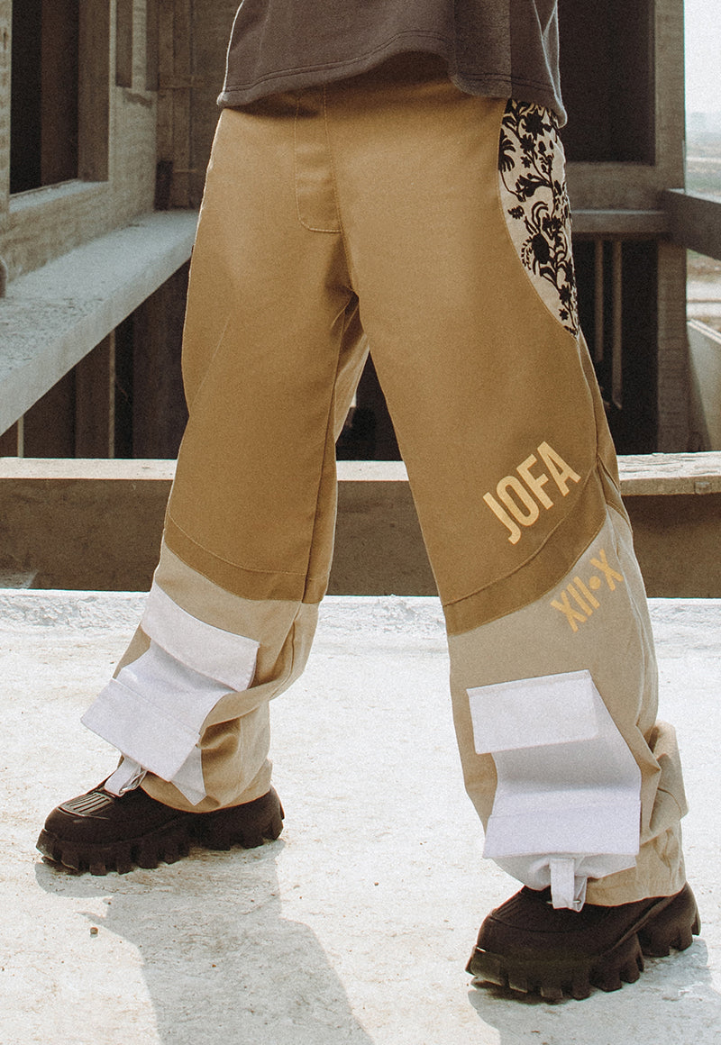Redefine modern utility with these cotton twill wide-leg pants, where functionality meets luxury design. Featuring cargo-style pockets on each shin and intricate embroidery patches on the thighs, these pants are...
