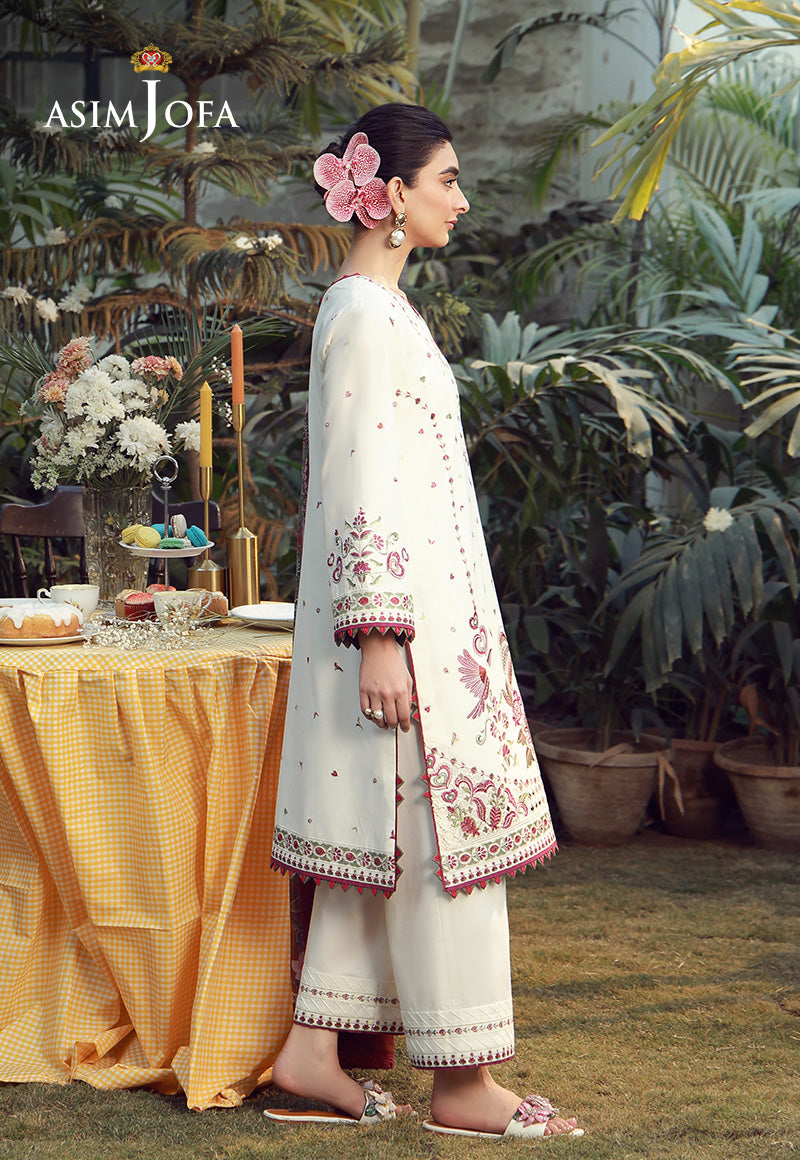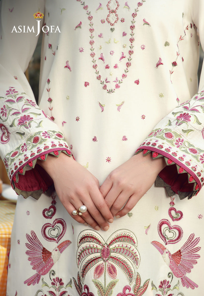 An ethereal expression of celebration and craft. The ivory shirt blooms with maroon, green, and light pink embroidery, enhanced by delicate organza inserts that lend depth and dimension to its artistry. Paired with a beautifully printed chiffon dupatta, this ensemble exudes refined charm, capturing a timeless yet distinctive elegance perfect for Eid festivities.