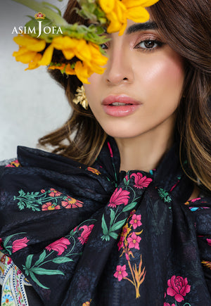 This black outfit offers a cohesive and refined look, with the shirt and trousers adorned in an elegant paisley print. It’s paired with a lightweight dupatta featuring a delicate floral pattern, striking the perfect balance between tradition and modern charm.