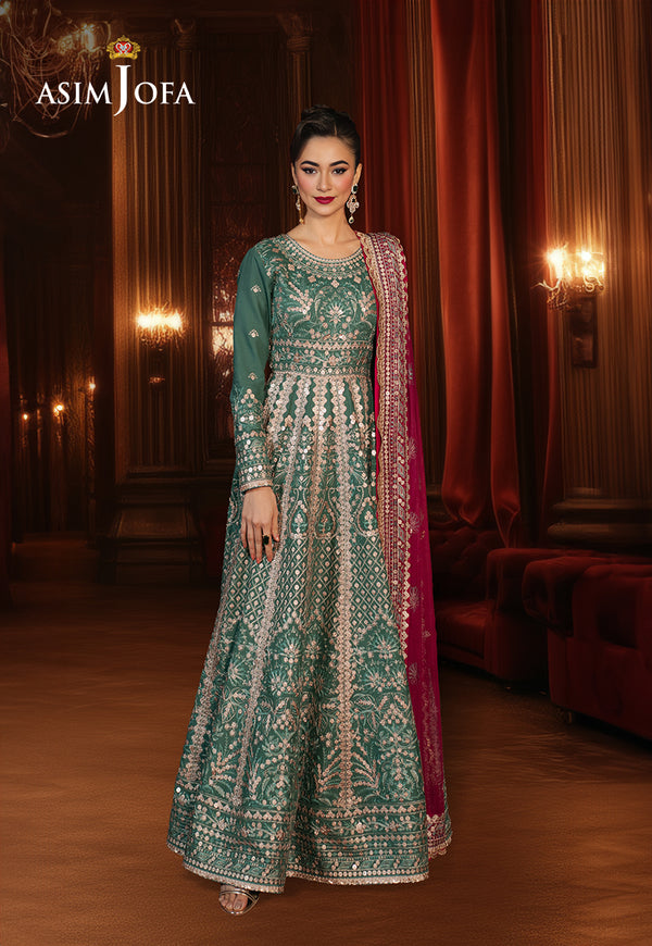 Step into a world of timeless beauty with this peshwas from Asim Jofa's "Jaan-e-Jahan Chiffon Collection" a testament to classic elegance adorned with muted silver zari and self-color embroidery including...