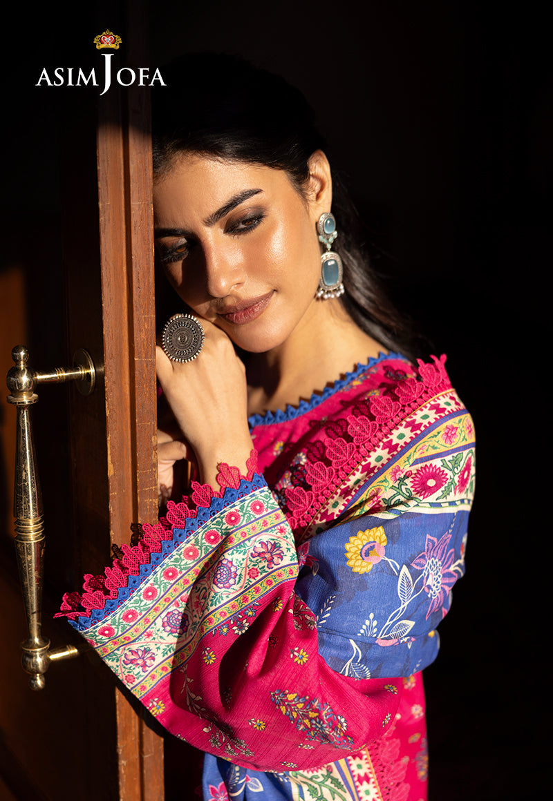 Feminine and lively, this pink design features a perfect balance of complementary prints that flow harmoniously across the fabric. The printed dupatta in a contrasting shade gently enhances the design with its floral design, making this ensemble a chic and elegant choice for any occasion.