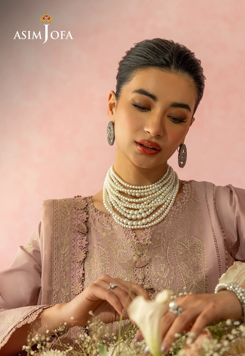 Drenched in the soft romance of a twilight garden, this tea pink ensemble is a seamless canvas of architectural beauty and tactile wonder. The shirt is an embroidered masterpiece where the boring technique creates a lattice of light across the fabric, offering a peek into a world of refined craftsmanship. Subtlety is the ultimate luxury, with mink-toned threadwork adding a layer of shadowed depth and sophisticated texture to the rosy base. Finished with a lustrous organza border and a gorgeously embroidered chiffon dupatta, this ensemble is a whispered promise of elegance.
