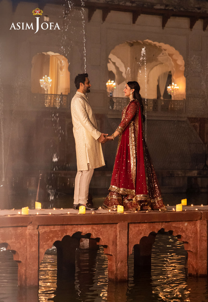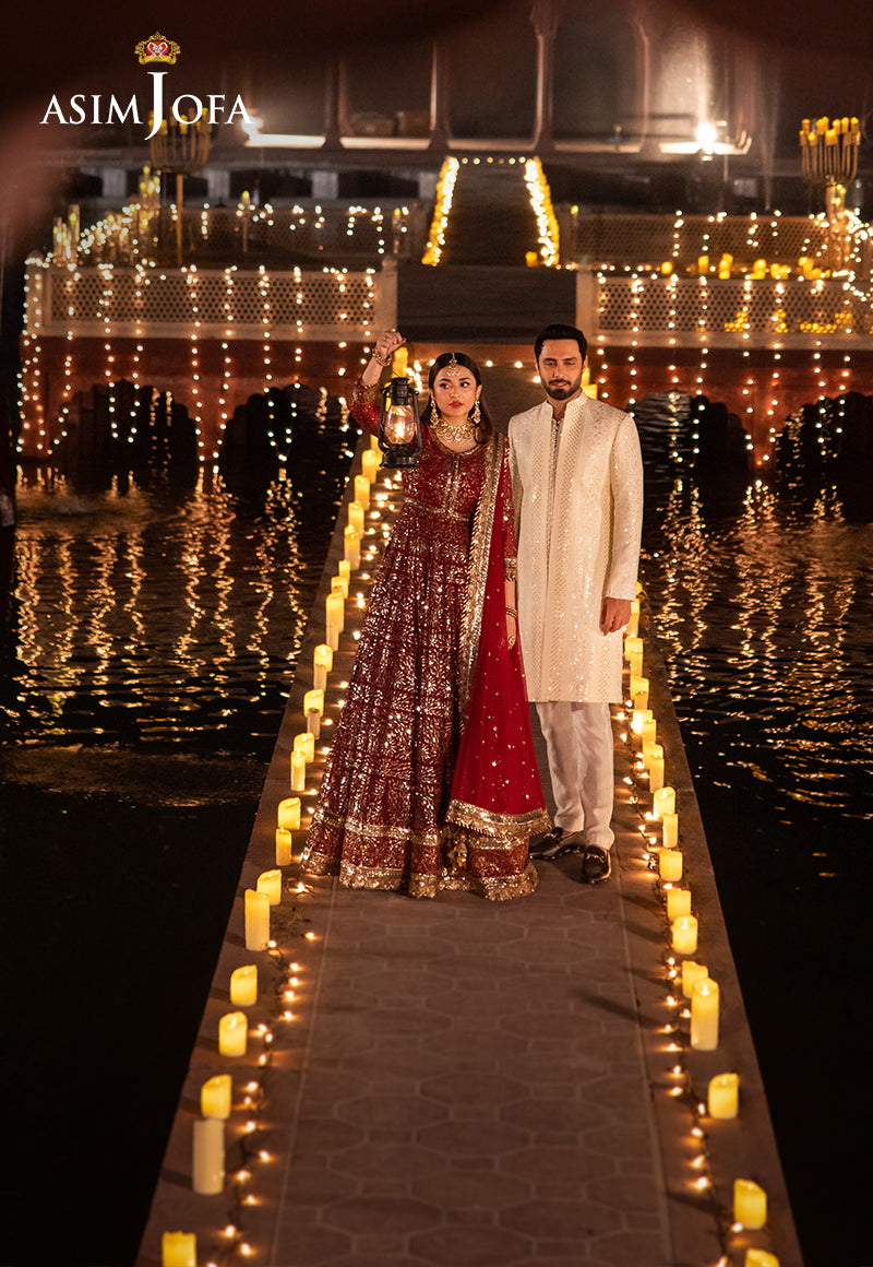 Like a passionate love letter, this cherry red ensemble is a declaration of regalia. The embroidered Peshwas, a masterpiece of crimson, is beautified with silver threads that shimmer like moonlight on water, surrounded by a constellation of sequins, deepened by the richness of red threads. The embroidered dupatta, a soft whisper of love, completes this symphony of passion.