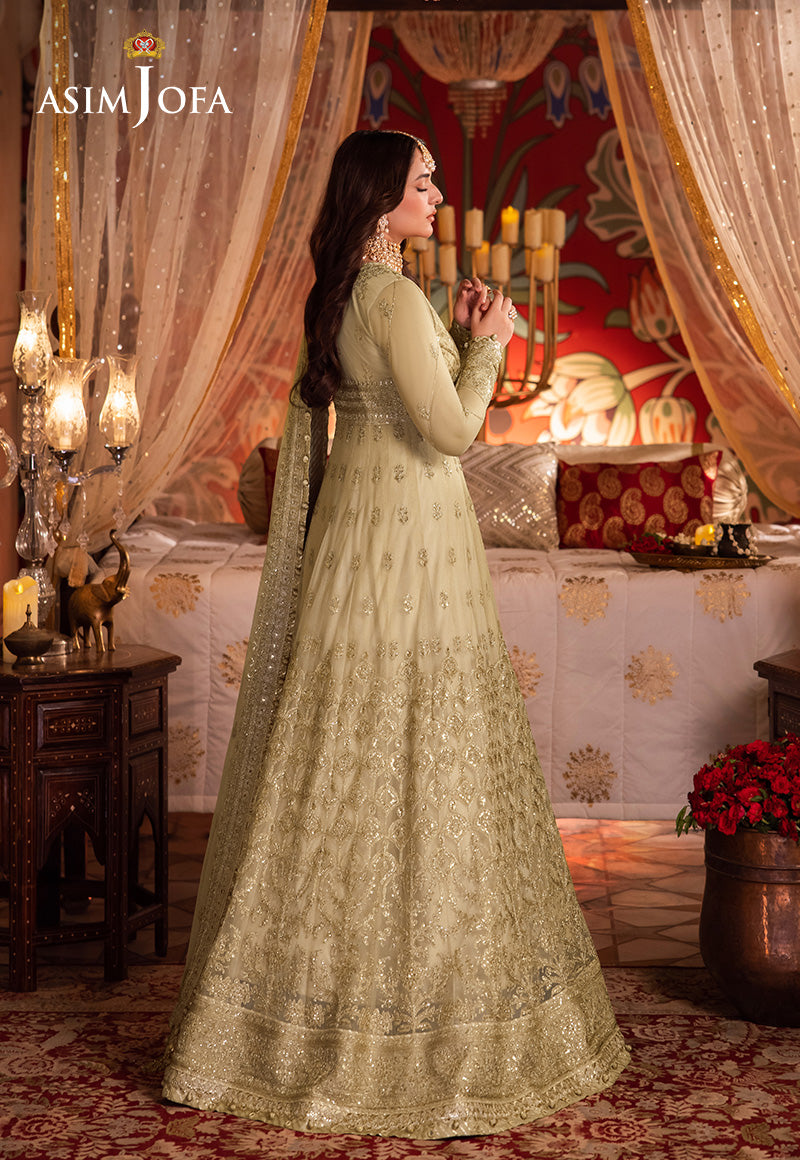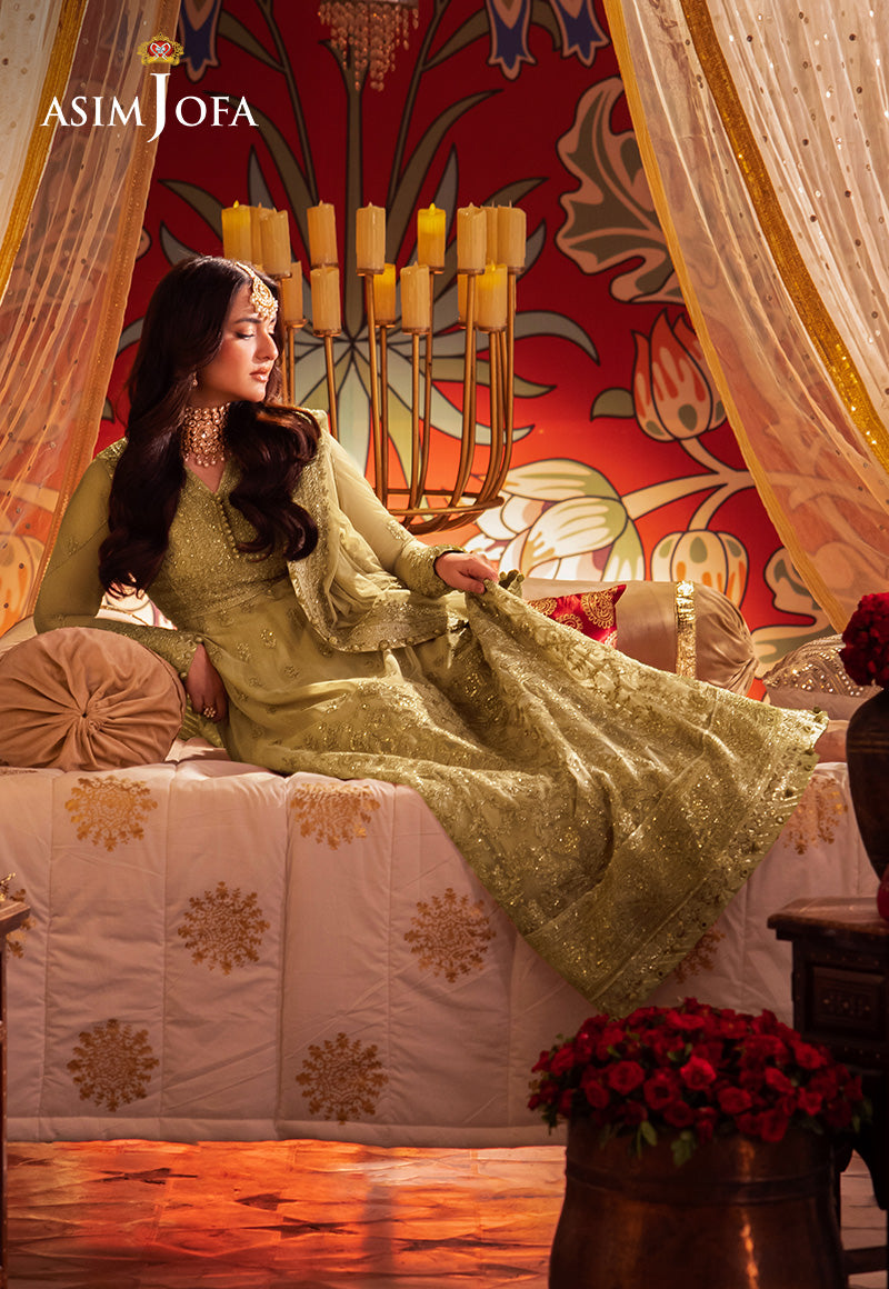 Adorn yourself in the tranquil elegance of a white rose with this gorgeous attire, a breathtaking work of art. The alluringly embroidered Peshwas is magnificently beautified with ivory dori in an amalgam of light gold zari, surrounded by light gold cupped sequins, glistening like a dew-kissed camellia. Paired with an embroidered dupatta, serving as a veil of enchantment, this breathtaking ensemble becomes an impeccable choice for celebratory soirées.