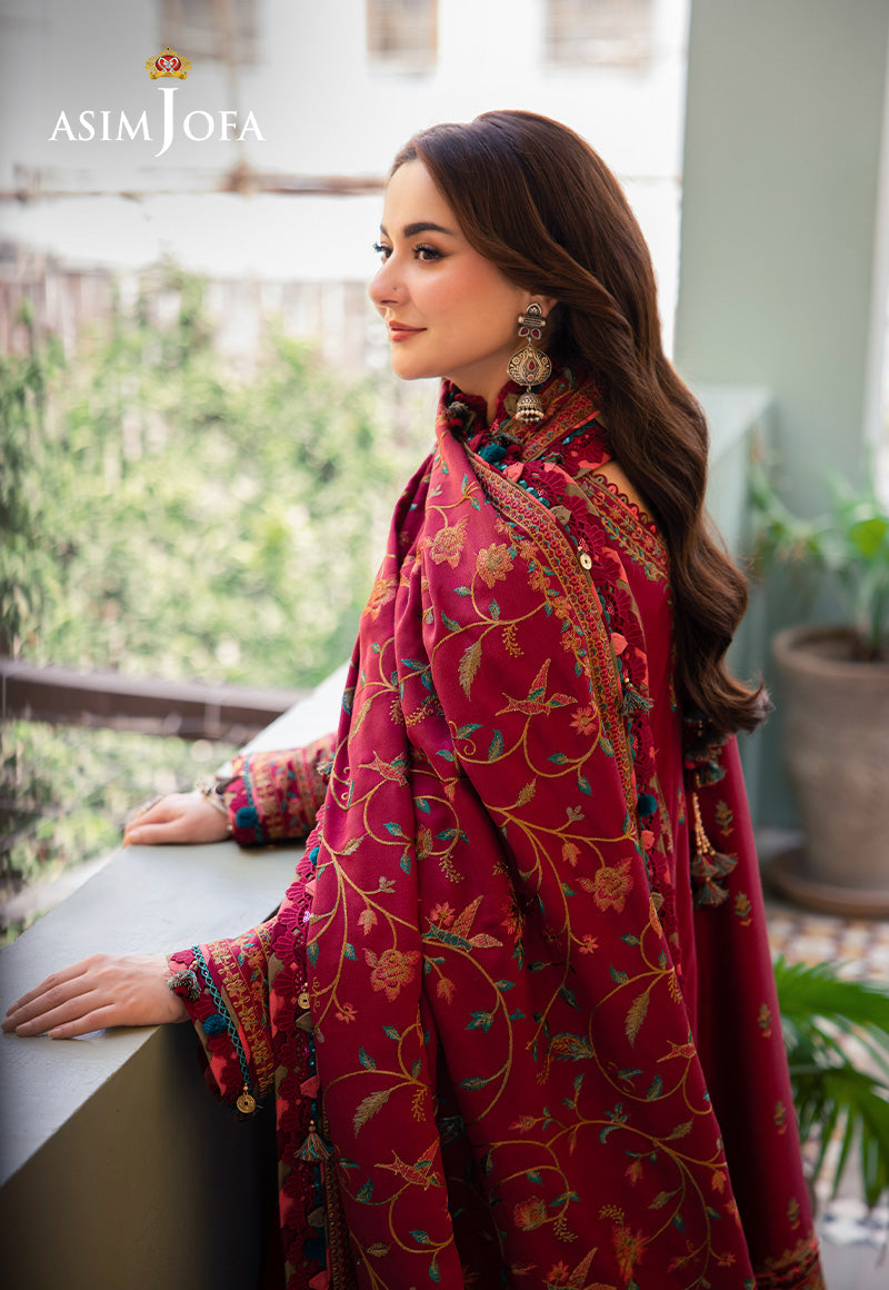 Radiate warmth and vitality in this enchanting cherry red ensemble, where tradition meets modernity. The embroidered shirt boasts intricate threadwork in sea green, pink, and rust hues bringing to life a symphony of Kashmiri motifs that speak to the soul. The matching shawl, adorned with botanical influences, unfolds like a blooming garden, capturing the essence of northern beauty. Together, they create a harmonious tapestry, inviting you to celebrate the richness of your heritage.
