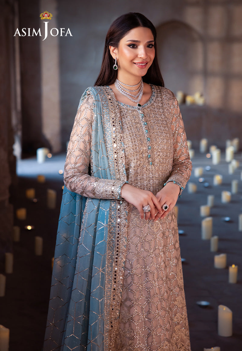 - Embroidered all over jaal for front, back, sleeves on twin sequence on net