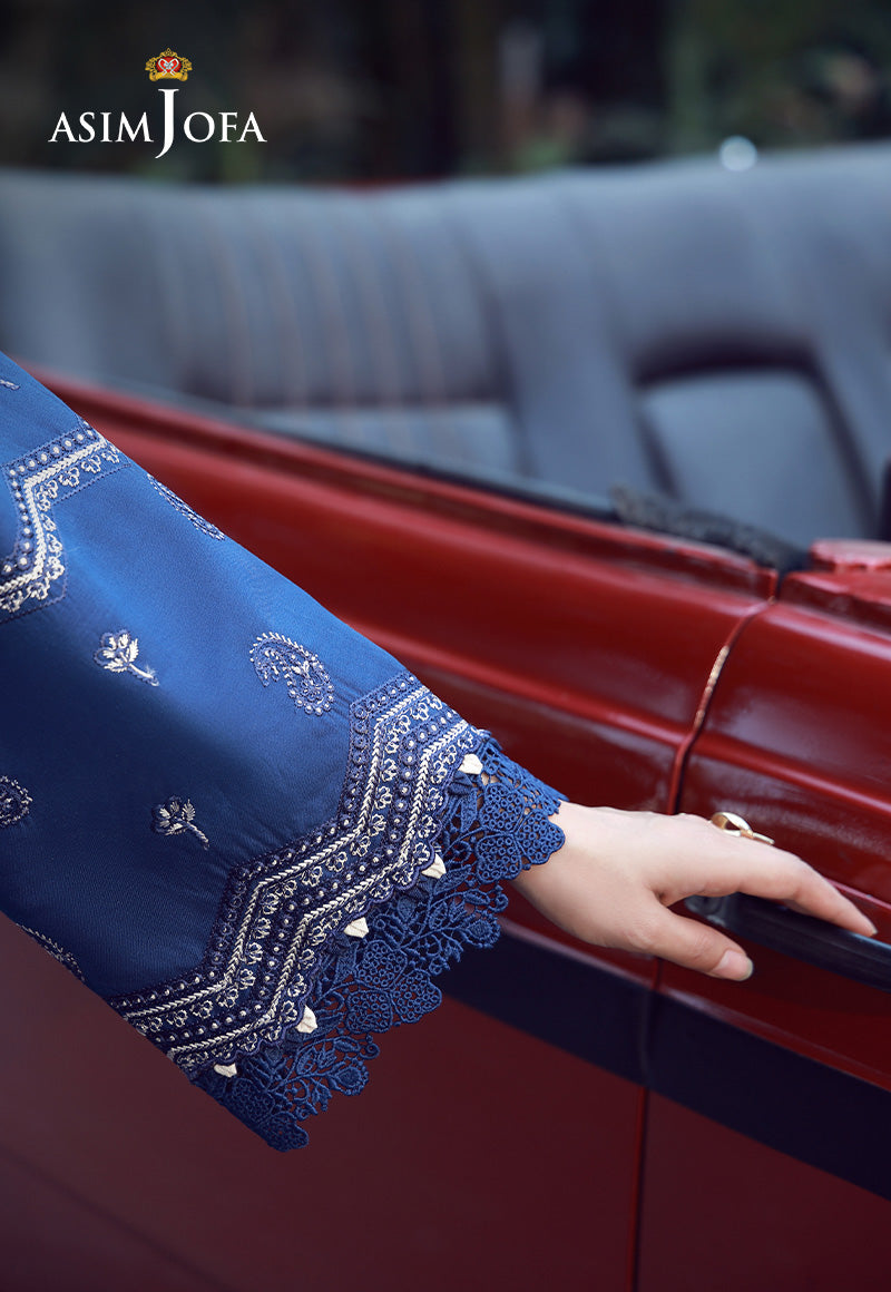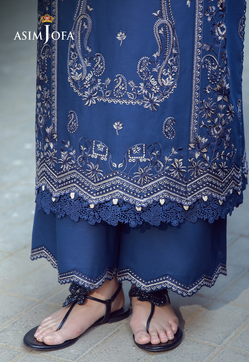 Timeless sophistication illuminated for the festive hour. The navy blue shirt features off-white and navy threadwork in exquisite paisley motifs, creating a dramatic yet polished contrast. Finished with a gorgeously printed chiffon dupatta, this ensemble feels steeped in heritage while remaining impeccably modern for Eid celebrations.