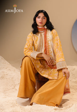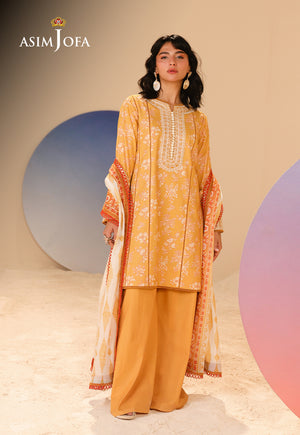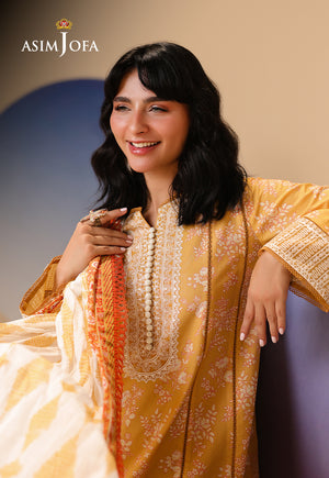 As gentle as sunlight filtering through lace curtains, this yellow ensemble glows with muted prints. Embroidery along the neckline and sleeves adds a soft texture, while the printed airy dupatta flutters like a summer breeze through golden fields.