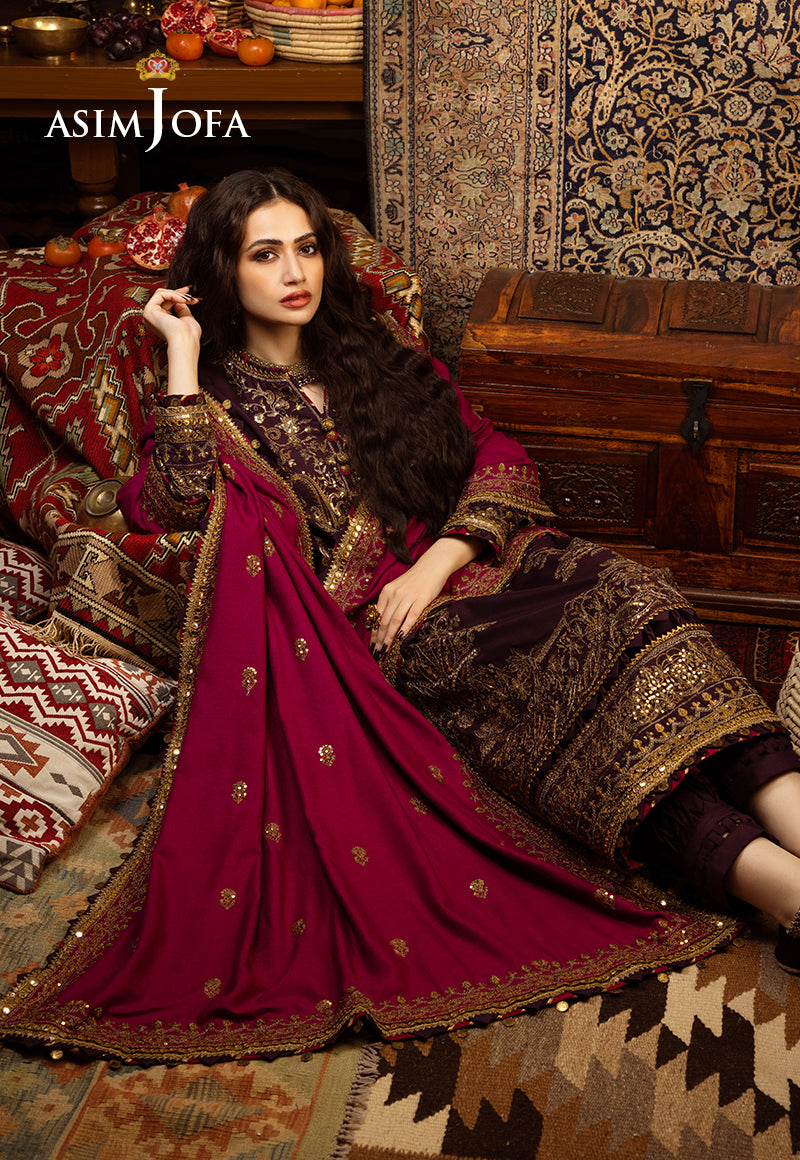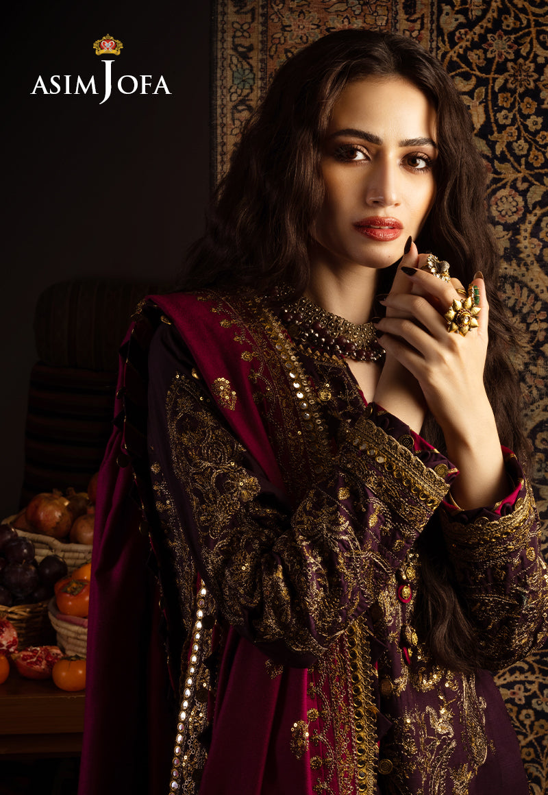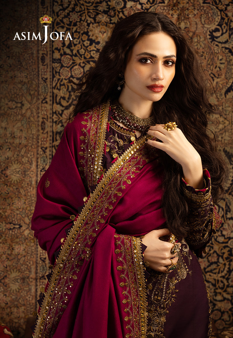 This ensemble is a breathtaking masterpiece that embodies the essence of Kashmiri dreams. The dual-tone zariwork, adorned with gold sequins, captures the essence of the region’s luxurious heritage. The embroidered details grace the ensemble with elegance and tradition, much like the captivating stories that have been woven into the fabric of Kashmir. The embroidered borders for the front and back chaak add sophistication to this exquisite outfit. The luxurious shawl envelops the wearer in the warmth and charm of Kashmir’s tradition.