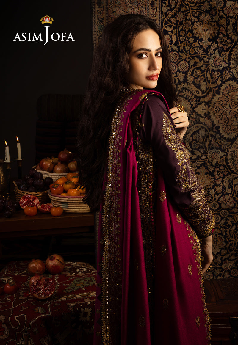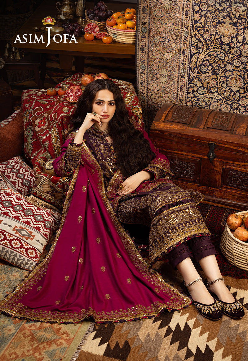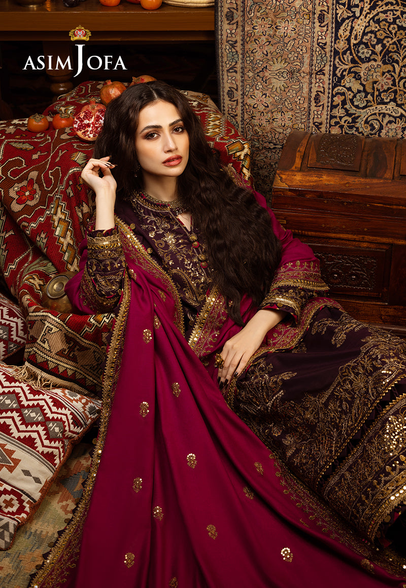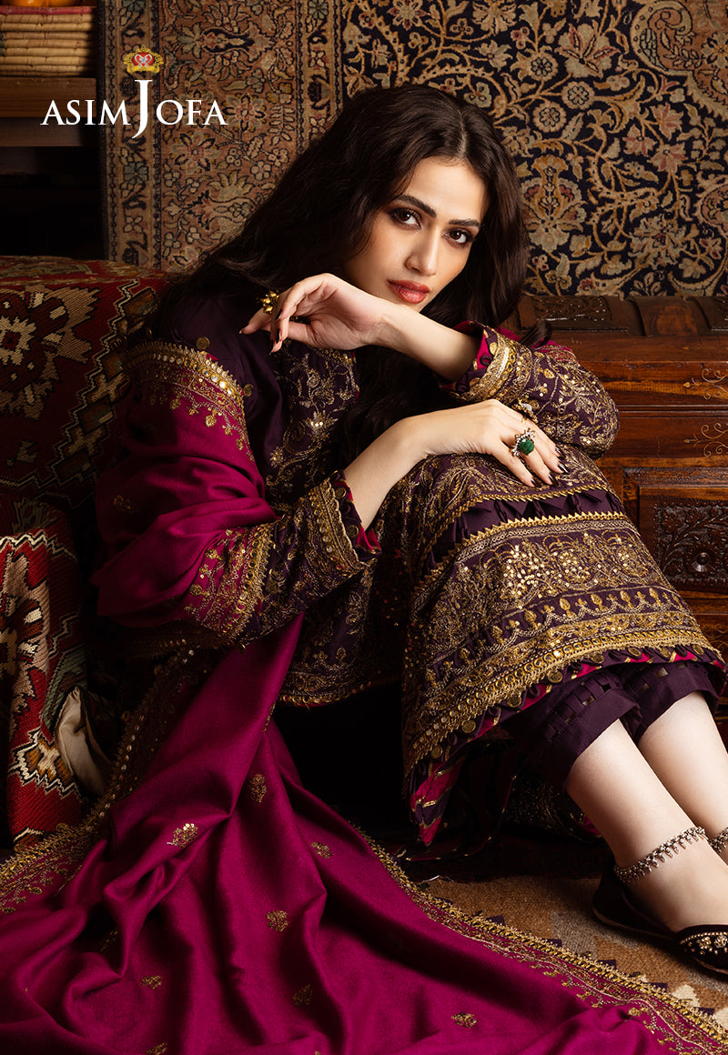 This ensemble is a breathtaking masterpiece that embodies the essence of Kashmiri dreams. The dual-tone zariwork, adorned with gold sequins, captures the essence of the region’s luxurious heritage. The embroidered details grace the ensemble with elegance and tradition, much like the captivating stories that have been woven into the fabric of Kashmir. The embroidered borders for the front and back chaak add sophistication to this exquisite outfit. The luxurious shawl envelops the wearer in the warmth and charm of Kashmir’s tradition.