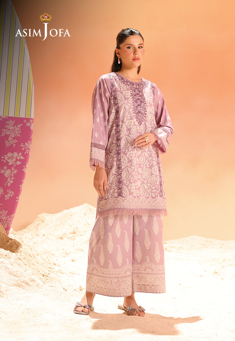Soft as twilight, this light purple ensemble dances with paisley patterns that flow like a poetic rhythm. The embroidered neckline, front, and sleeves shimmer with grace, while the printed trousers bring it all together like the final stanza of a well-written verse.