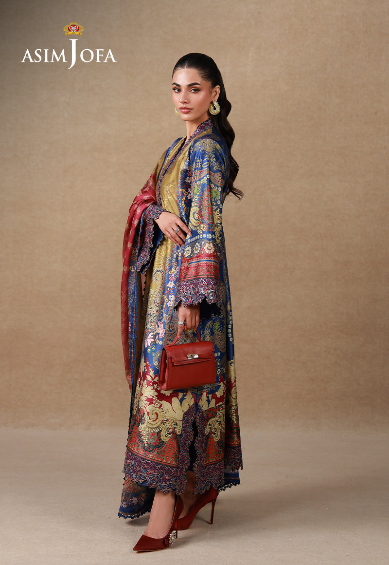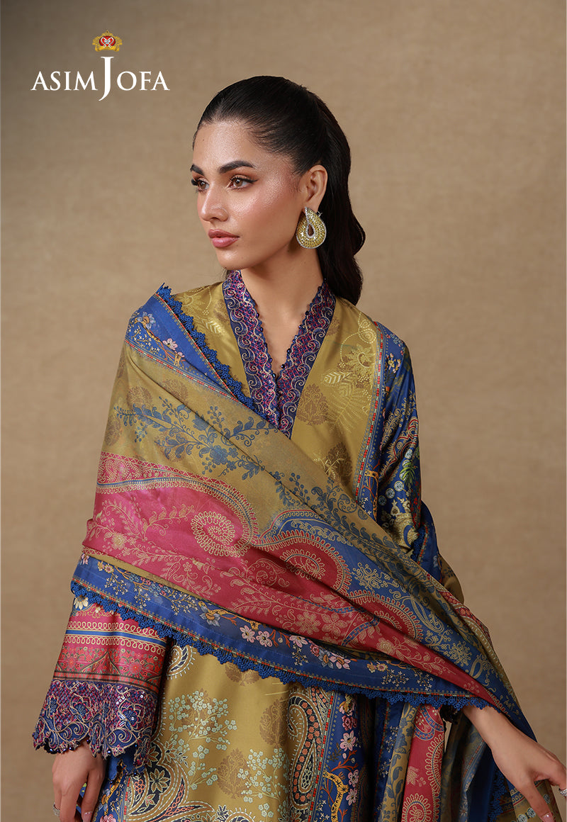 AJULSCD-01 Embroidered Charmeuse Silk Stitched 3 Pcs