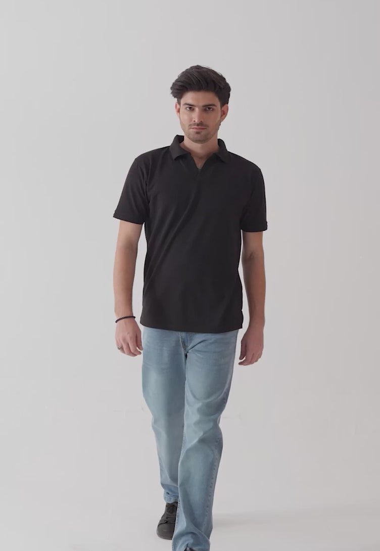 Whether you're dressing up or keeping it casual, this black polo t-shirt brings a solid, no-fuss edge to your wardrobe and lets you embody an unmatched finesse.