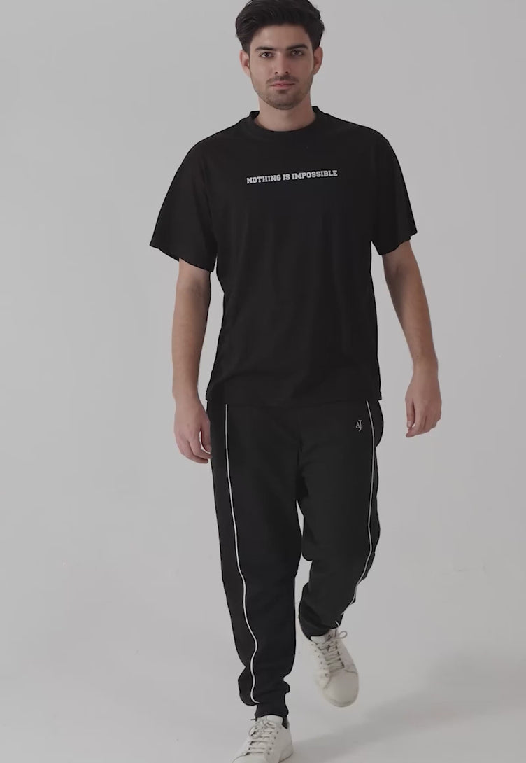 Make a bold statement in this black round neck graphic t-shirt. Featuring the powerful words "Nothing is Impossible", it’s more than just style, it’s a mindset.