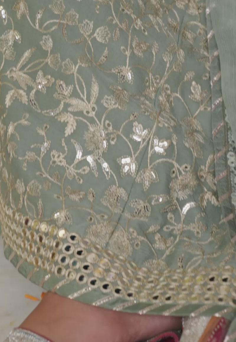 - 2.5 meters embroidered lace for front & back daman on chiffon