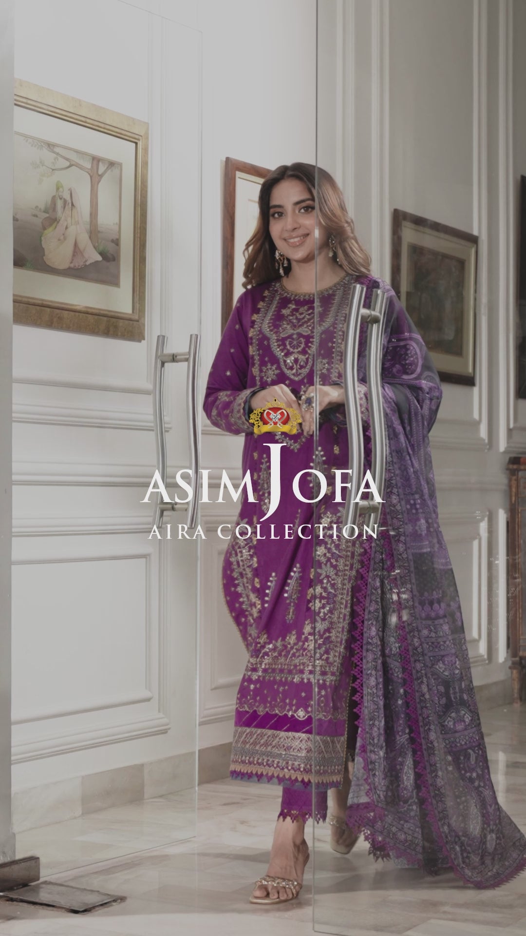 Symbolizing the spirit of true grace showcased by Saboor Aly, this attire from ‘Aira’ collection has a royal appeal. The ankle-length cambric shirt has crewel embroidery adorned with zari, blue thread, and sequins that glitters like a gem. It comes with dyed cambric trouser and a printed chiffon dupatta oozing a classic vibe. A harmonious match to the whole look making it a gorgeous drape to flaunt.
