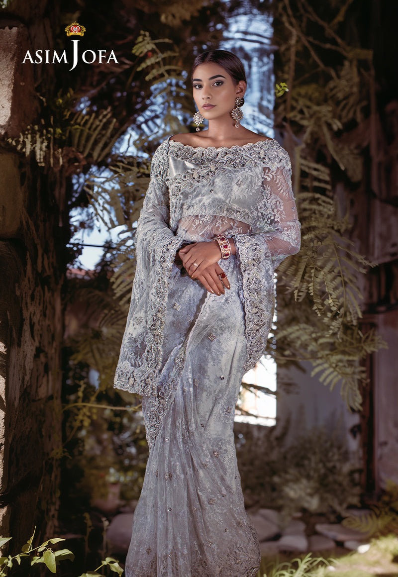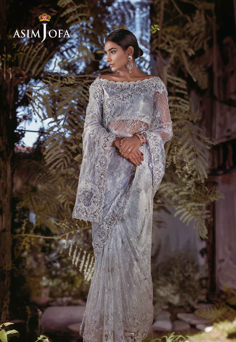 AJBRD-07 HAND EMBROIDERED CHANTILLY SAREE 3 PCS