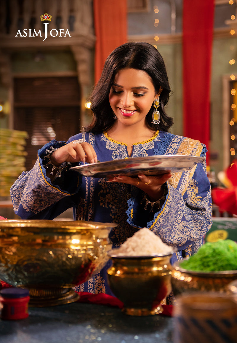Immerse yourself in the beauty of a bright sky with this captivating blue outfit. The vibrant hue evokes a clear summer sky, while the subtle beige accents whisper of sandy dunes stretching towards the horizon. The dupatta, adorned with a complementary design, completes the look, creating a cohesive picture of serene elegance.