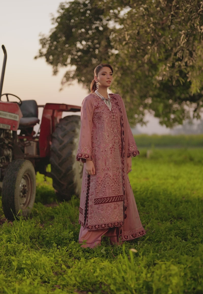 Like the blush of dawn as it kisses the horizon, this tea pink ensemble radiates a soft, ethereal charm. The gorgeously embroidered shirt in a delicate hue mirrors the serenity of blooming petals in a sunlit meadow, while intricate threadwork in complementary tones of purple, maroon, beige and tea pink evokes the artistry of nature’s finest details. Paired with an exquisitely embroidered dupatta that drapes like a whispering breeze, this ensemble is a poetic ode to grace, capturing the essence of renewal and timeless beauty.