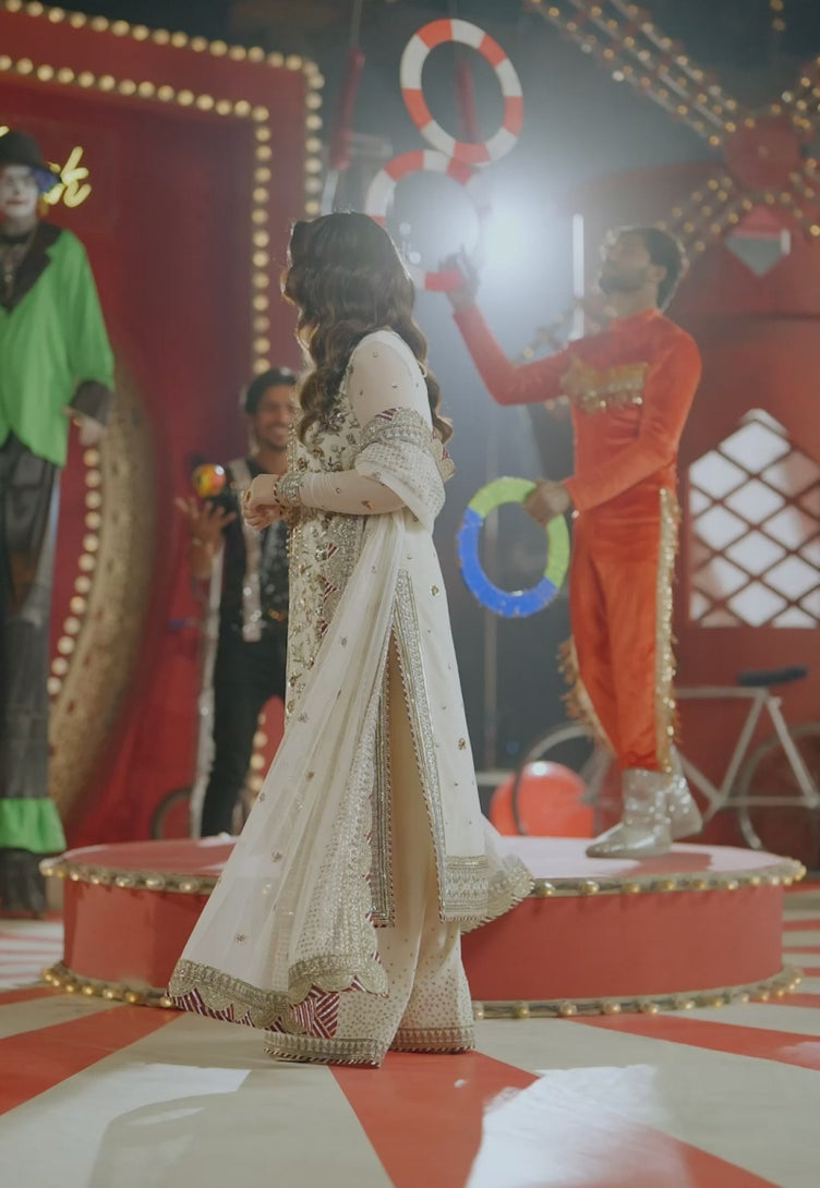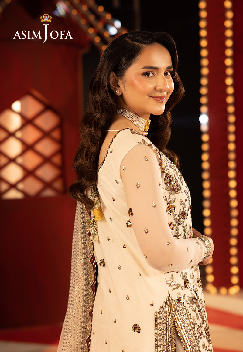 The epitome of refined luxury, this ivory ensemble is a serene vision brought to life through exquisite craftsmanship. The shirt stands as an embroidered masterpiece, adorned with a radiant interplay of 5mm antique gold and 3mm light gold cupped sequins, while sage green and maroon threadwork add richness and depth to the design. The look is elevated with flawlessly embroidered trousers, dusted with stardust-like sequins that lend a soft, luminous glow. Completing the ensemble is a lavishly embroidered dupatta, draping effortlessly to define elegance and grandeur. This is not just fashion—it’s the very definition of opulence.