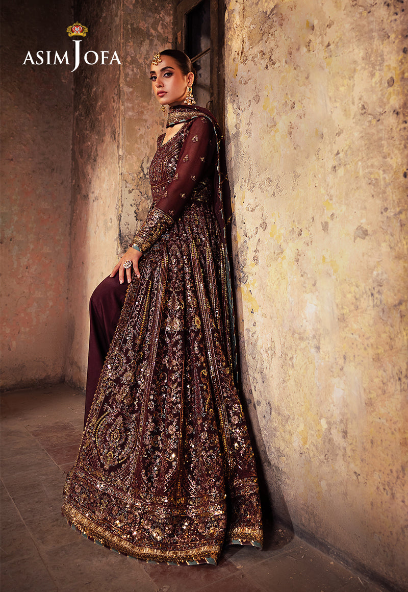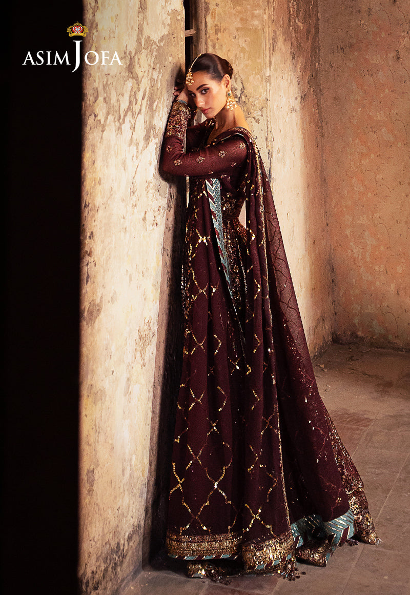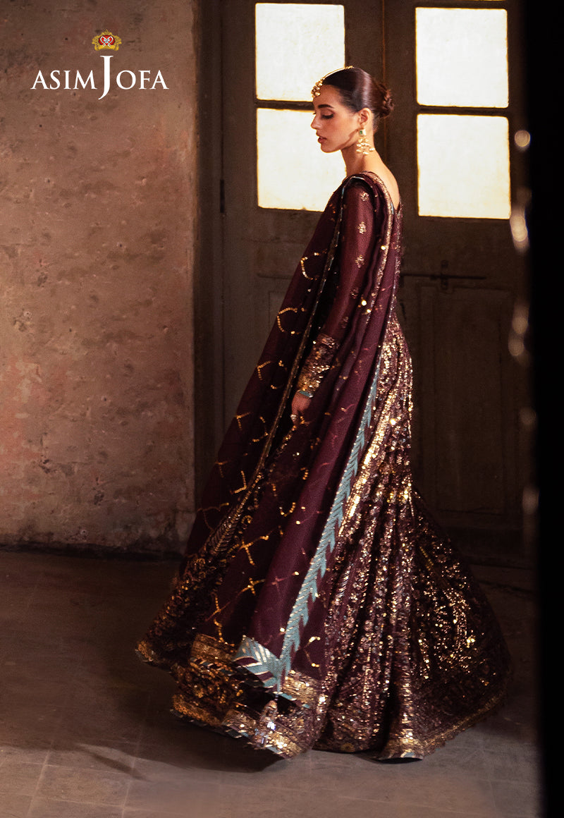 Radiating elegance in a rich mahogany hue, this ensemble captures timeless allure. The embroidered Peshwas, an artful masterpiece features antique gold zariwork that weaves gracefully throughout, adding a vintage charm, while 5mm flat sequins and 3mm cupped antique gold sequins shimmer delicately across the fabric. Embroidered with deep maroon, sage green, and soft pink threads, along with gold lurex accents, the intricate detailing brings depth and sophistication to the design. Paired with an embroidered dupatta, this creation transforms into a masterpiece of refined beauty, making a statement of enduring elegance.