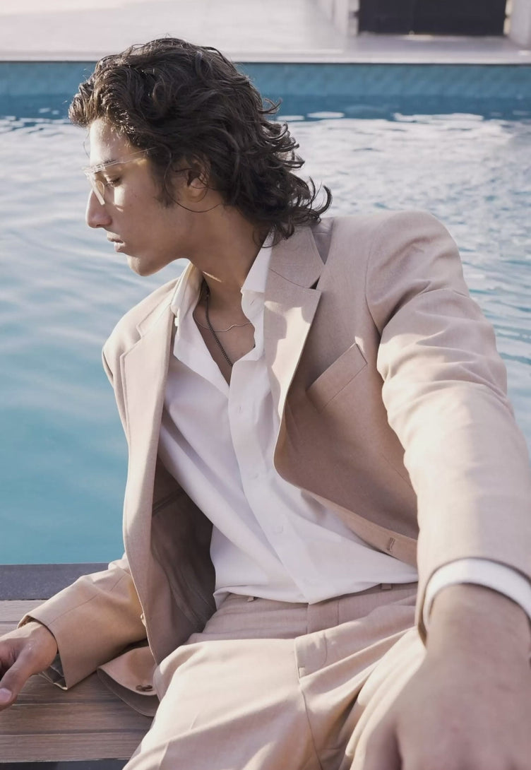 Tailored to perfection, this suit speaks in the language of quiet luxury—where clean hue, subtle accents, and a commanding fit come together to craft a look that’s both effortless and unforgettable. It doesn’t just fit; it frames your confidence.