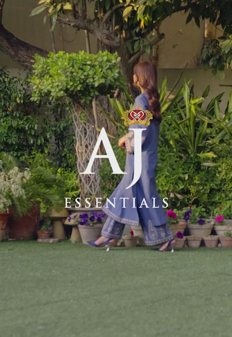 Unveil the essence of celestial beauty with Asim Jofa's Essentials collection. Like a moonlit voyage, this captivating ensemble in the depths of True Navy mesmerizes the senses. The cambric shirt dances with elegance, adorned by delicate white and silver embroidery that weaves constellations of enchantment along the neckline and embroidered border for the front daman. Sleeves crafted from dyed cambric embellish the ensemble with embroidered borders, evoking ethereal grace. The plain dyed wide-width cambric shirt, a celestial canvas, serves as the backdrop to showcase the celestial artistry. The trouser, draped in dyed wider width cambric, is gracefully elevated with an embroidered border, completing this celestial symphony.