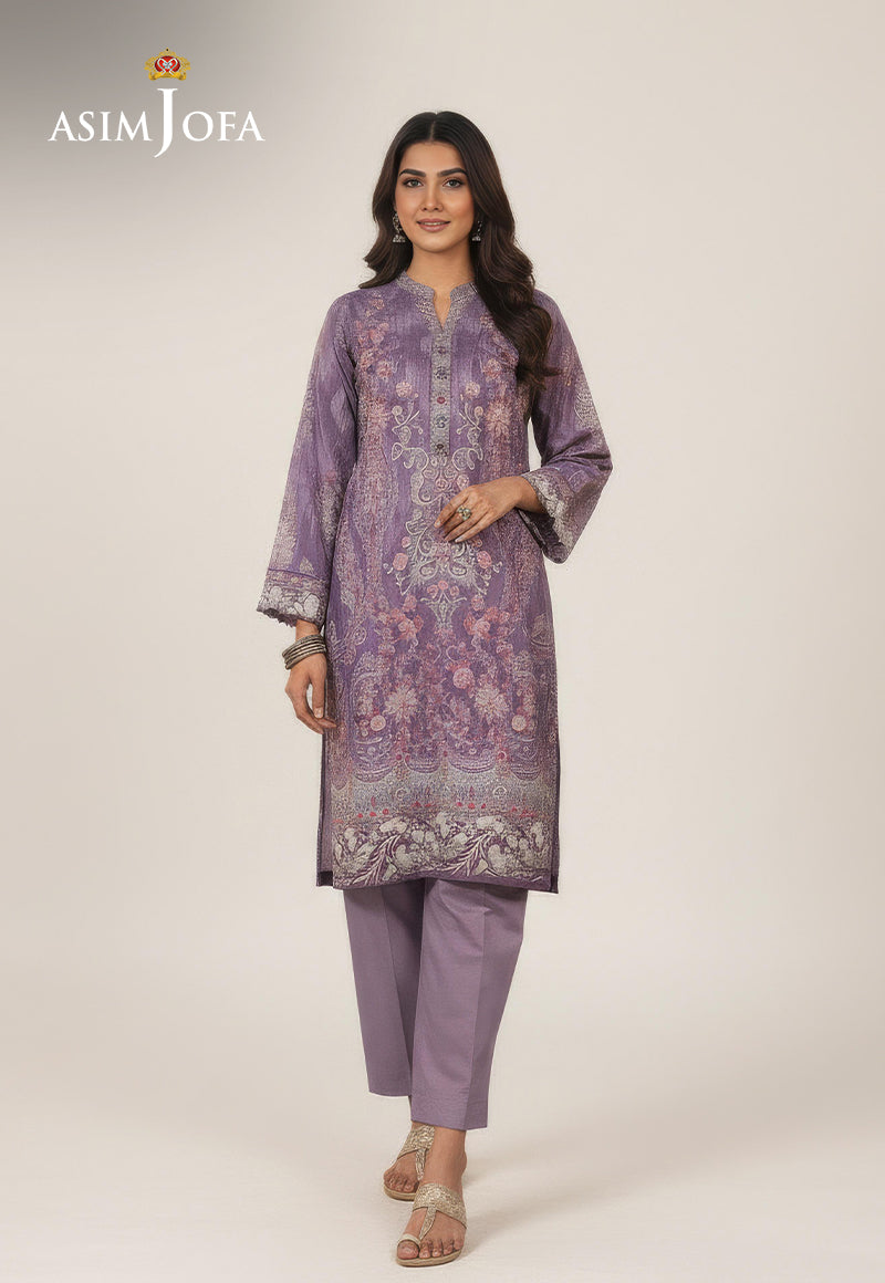 Delve into the world of elegance with this enchanting lilac ensemble from Asim Jofa's “Aira – Summer Print Collectionâ€. The delicately embroidered neckline sets the tone for a harmonious blend of tradition and contemporary style. Adorned with digital printed motifs, . Each detail tells a story of cultural heritage and innovation creating an exquisite charm that is elevated by Sabeena Farooq's aura. Embrace the fusion of tradition and modernity with this outfit.