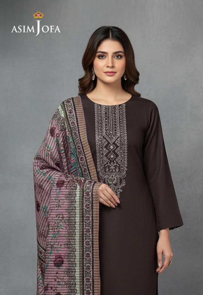 Dive into the depths of sophistication with this graphite gray ensemble. The stunning shirt, embroidered with intricate threadwork in gray, lilac, and navy blue creates a symphony of color. The shimmering two-toned zari and silver sequins add a sparkle reminiscent of moonlit nights. Adorned with paisley motifs that honor traditional artistry, the embroidered shawl in navy-blue shade, featuring heavily embroidered pallus, completes this luxurious look, ensuring you shine brightly in any winter gathering.