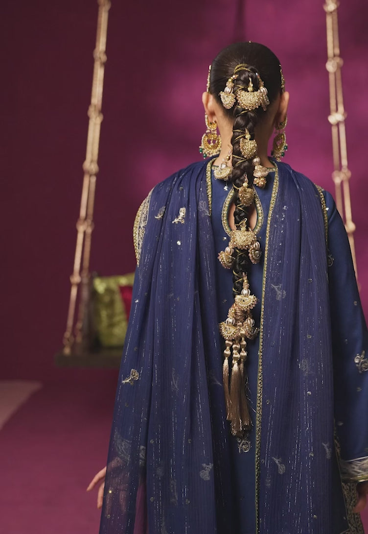 - Two pairs of embroidered front & back chaak on blue raw silk