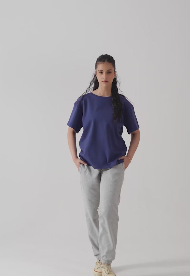 A staple with subtle edge. This navy round neck tee is sleek, versatile, and made to move with you from day to night—timeless, just like your style.